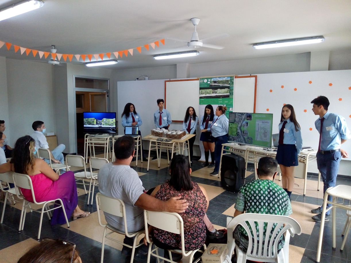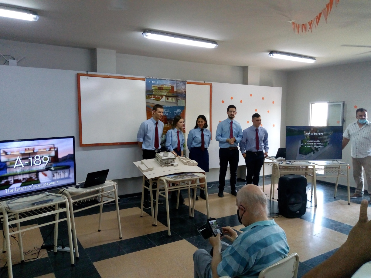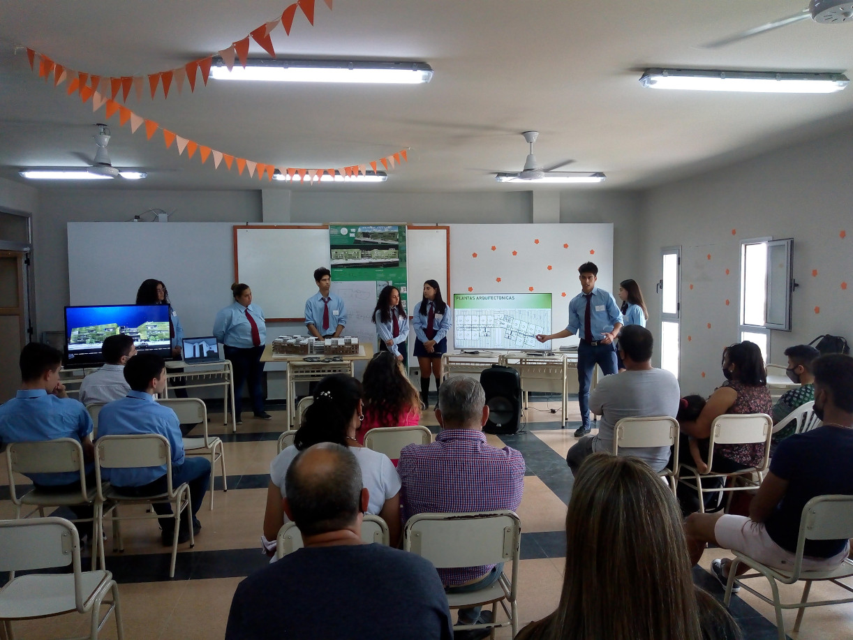 La presentación se realizó frente a directivos, profesores, otros alumnos de la especialidad y familias. Cada grupo expuso sus proyectos de la mano de maquetas, afiches ilustrativos, diapositivas, videos 3d y planos constructivos.