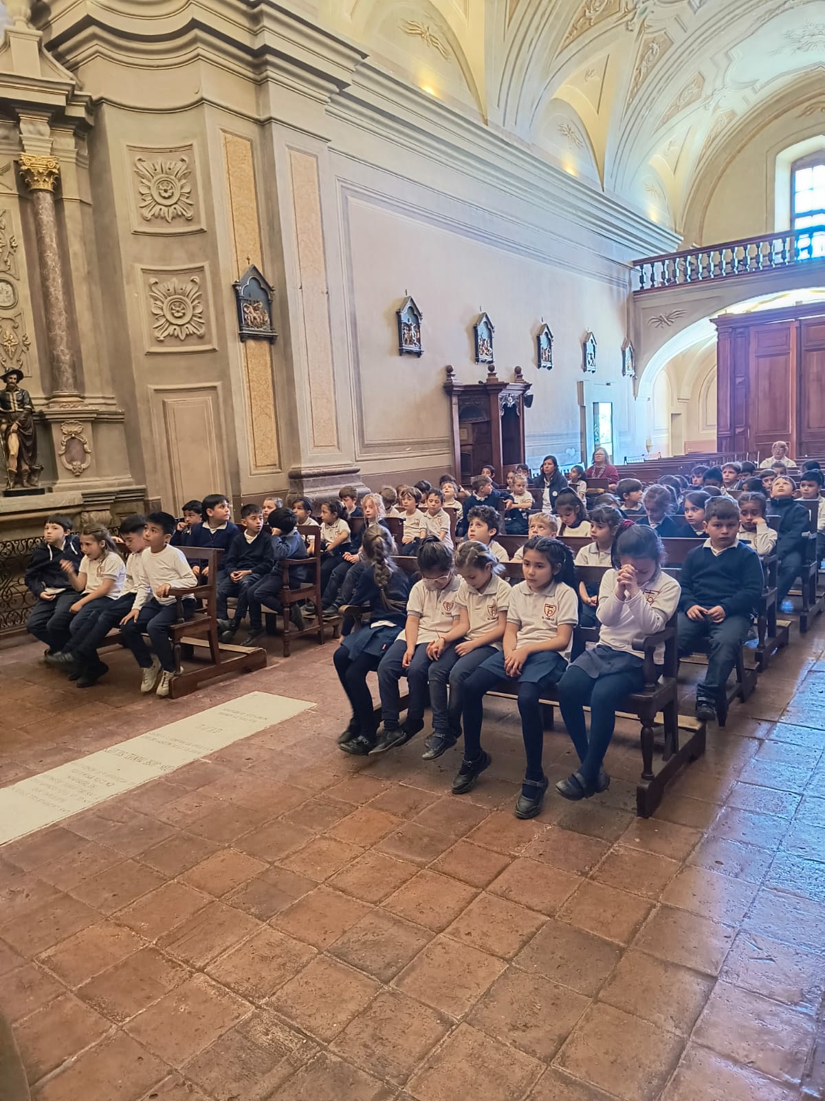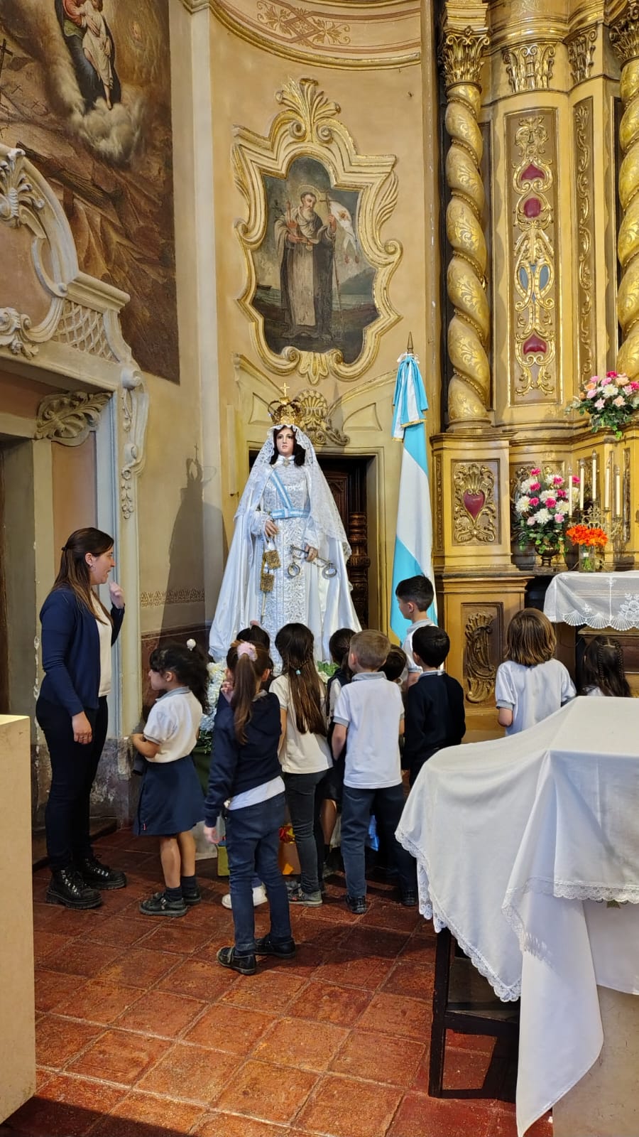 También con los más pequeños de la escuela, estudiantes de 1 er y 2 do grado A y B visitamos la Iglesia en los días de novena para que los niños pudieran vivenciar ver a la Virgen aproximarse, rezar, cantar y agradecer.